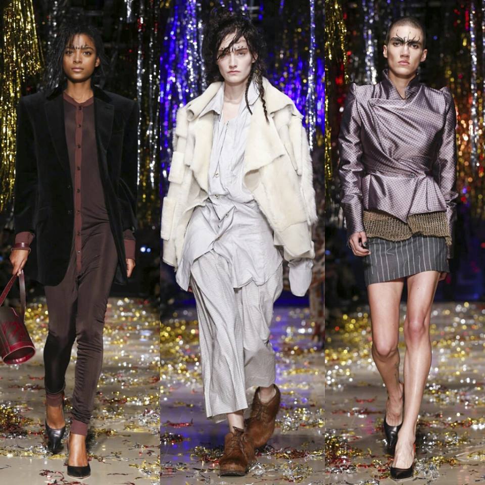 L’on assiste au catwalk de la très honorable Vivienne Westwood comme l’on force la porte d’un squat déjanté. Nous, on a adoré être de la fête. Vivienne nous propose une collection unisexe où les manteaux cintrés et les mini-jupes sont magnifiquement mis en valeur par des silhouettes masculines.