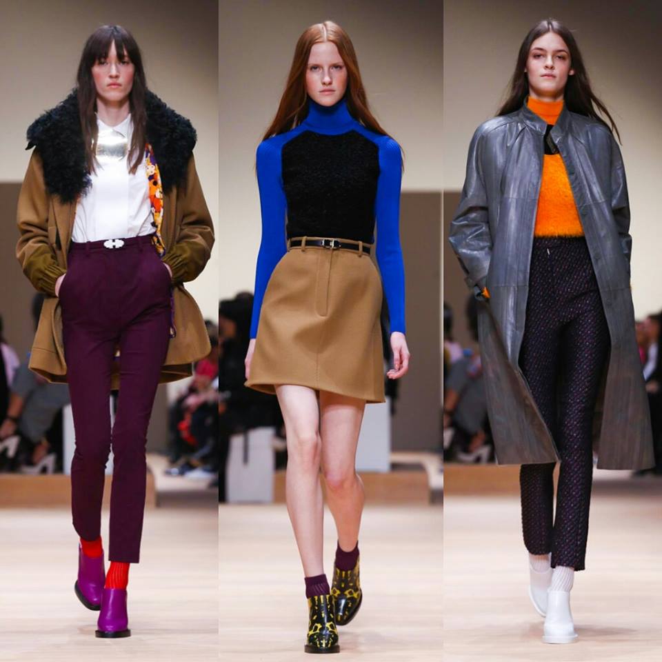 La silhouette vintage se la joue preppy avec des pantalons slims taille haute, des tuniques soyeuses aux imprimés fleuris, des chaussures vernies en cuir souple et ses socquettes en mailles – voilà pour la touche écolière. Les pantalons fluos, les manteaux oversize, le pull orange près du corps et les mules suggèrent une esthétique “après-ski” aux proportions réinventées -voilà pour le sportswear.