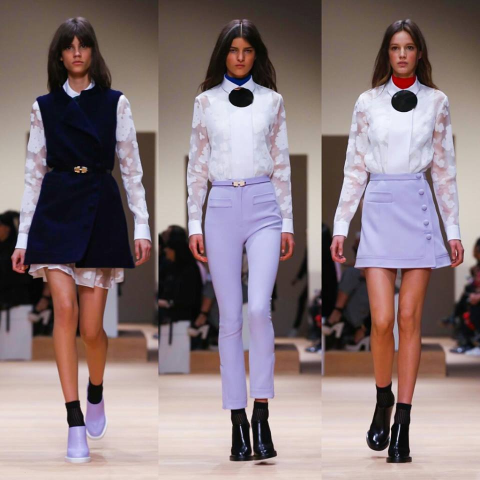 Test réussi pour Alexis Martial et Adrien Caillaudaud! Le duo très nouvellement nommé à la tête de la marque a rendu une collection mutine et bien ficelée. Les pièces qui valsent entre pops de couleurs et pastels sages puisent dans le creux des 70’s. Au menu, une féminité fraîche mais affirmée, un brin parisienne, un brin insolente. Les cols apparents, les tuniques enserrant la taille, et la veste bomber nous renvoient sur les bancs de la fac.